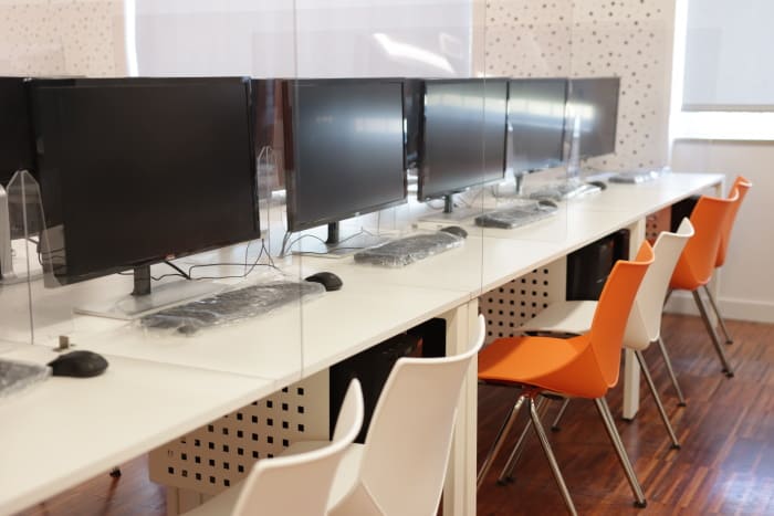 Conheça as nossas instalações através desta visita virtual, onde pode explorar os espaços que fazem parte do dia a dia dos nossos alunos e da nossa comunidade educativa. Do estúdio de televisão aos laboratórios de multimédia e informática, cada ambiente é pensado para potenciar a criatividade, o trabalho prático e a formação de competências técnicas e humanas. Navegue pelas diferentes salas e sinta um pouco do ambiente dinâmico e inspirador que caracteriza a Oficina, um espaço de aprendizagem inovador e dedicado à excelência educativa.