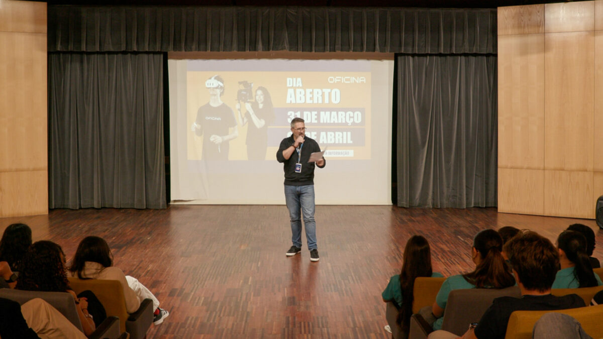 Através de workshops e atividades práticas, os alunos conheceram de perto as infraestruturas da OFICINA, incluindo estúdios de fotografia, som e pós-produção, bem como salas tecnológicas equipadas com recursos de última geração.